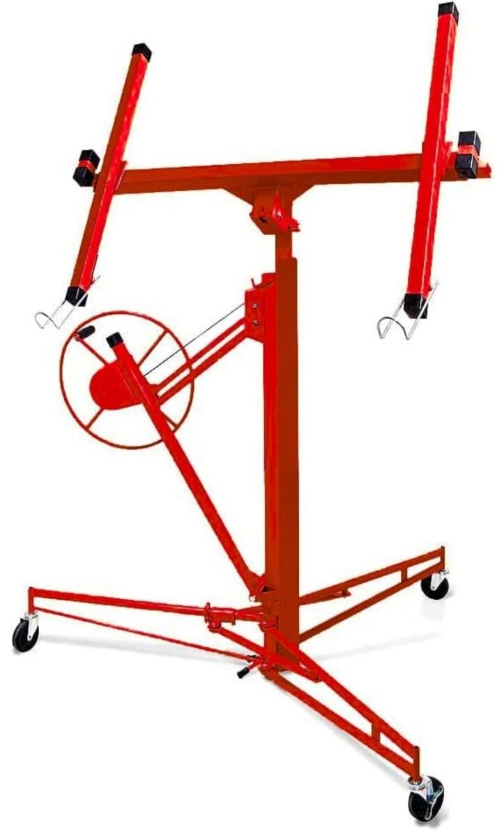 Dvigalo za plošče za suhomontažo, profesionalno, zložljivo in nastavljivo po višini XXL 140-350 cm delovna višina Dvigalo za gips plošče rdeče barve s CE certifikatom in nosilnostjo 68 kg